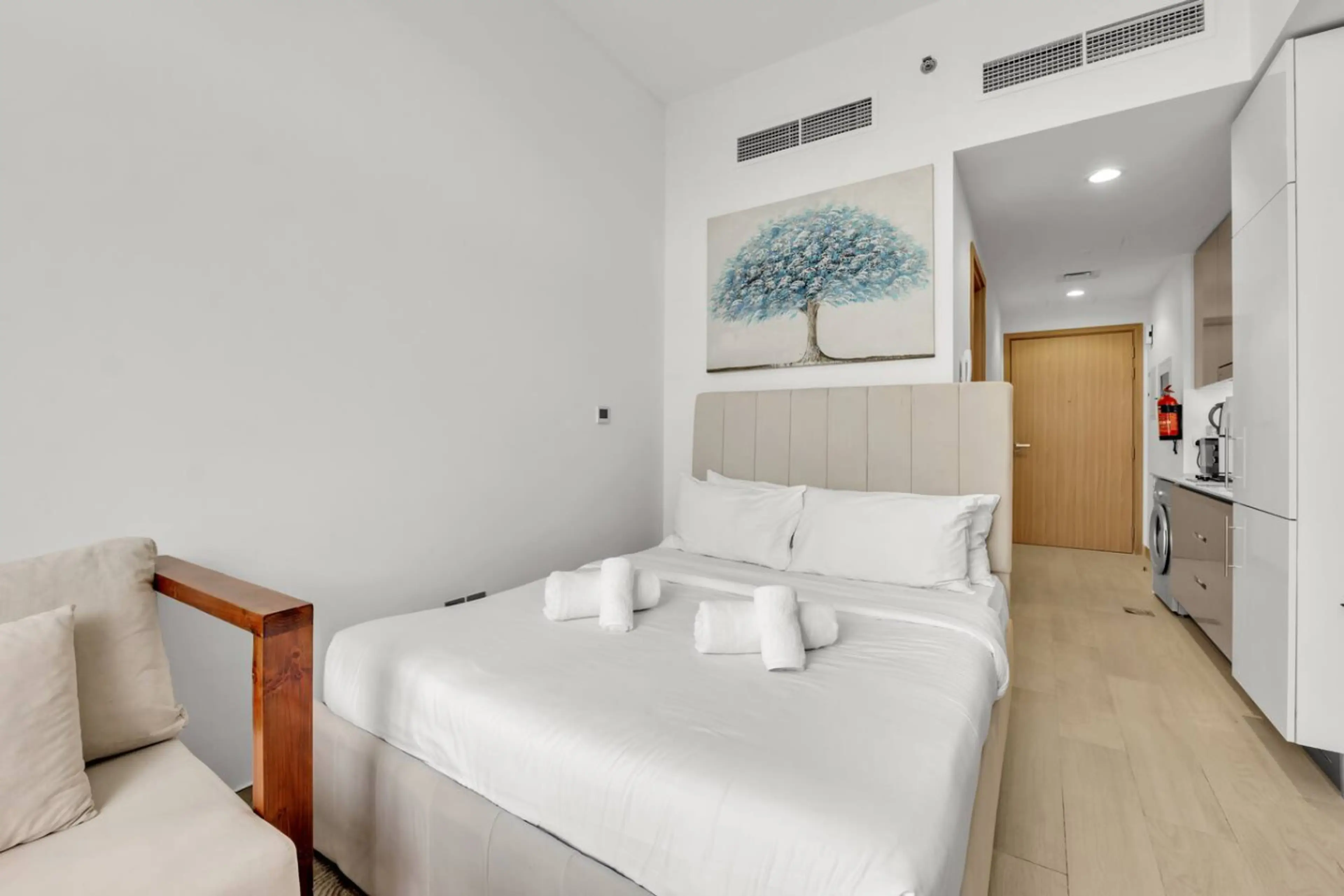 Kick back and relax in this calm, stylish space. Featuring a cozy living space with a comfortable bed, a fully-equipped kitchenette, high-speed Wi-Fi, a smart TV, and a private bathroom, it's the ideal home base for exploring Dubai. Located in a vibrant neighborhood, you'll have easy access to top a...